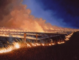 "The Native Americans of the Flint Hills called the prairie fires "The Red Buffalo". This painting is of the fires at night." |
